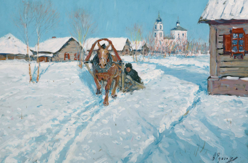 伊果里.安德烈 《爱沙尼亚冬天的农庄》1950年 45.5×30m