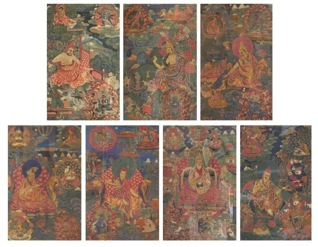 际华春秋“佛—沉香禅茶道场”专场亮相的稀世佛教艺术品,为一套(7幅)清中期藏传佛教故事题材的传世唐卡班禅喇嘛源流《提婆》、《阿跋迦罗》、《三世班禅罗桑丹珠》、《四世班禅罗桑却吉坚赞》、《萨迦班智达》、《六世班禅罗桑贝丹益西》、《雍顿•多杰贝》。这一套记载藏传佛教高僧大德及班禅喇嘛讲经传法故事的清唐卡原本十一幅,目前这七幅惊现于世,对研究藏传佛教的历史有着不可估量的学术价值,是唐卡艺术研究的范本。